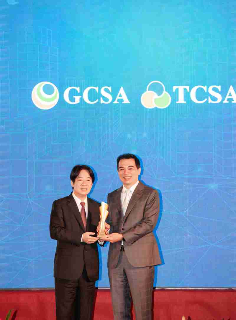 达全方位永续表现获全球永续奖及台湾永续奖肯定,,,由副总统赖清德颁奖 (左),,,,银河集团总经理柯富仁 (右) 代表领奖