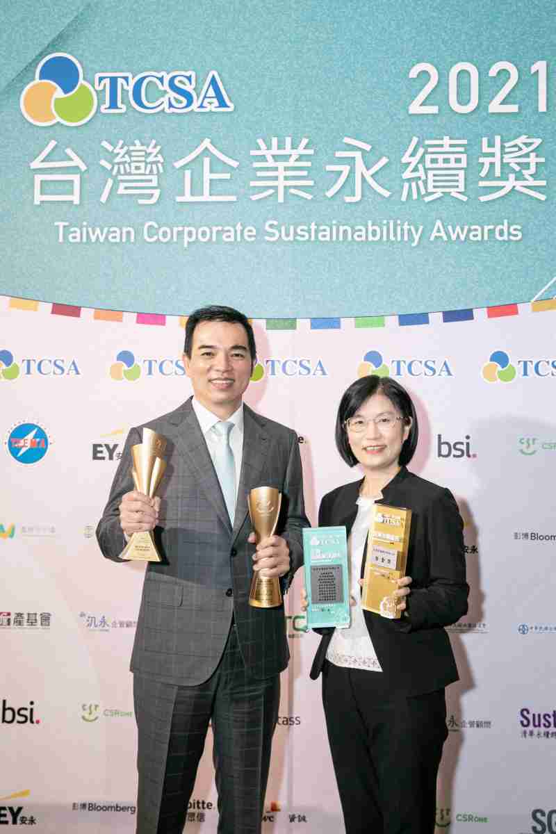 达在台湾永续奖所评比环境、、社会、、、、治理等各面向的永续绩效均获高度肯定 (左:银河集团光电总经理暨营运长柯富仁,,右:银河集团光电永续长古秀华)