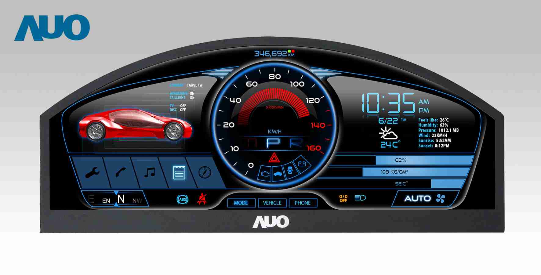 银河集团 12.3吋超高解析异型切割车用面板,,,,拥有流线外观及精细画质